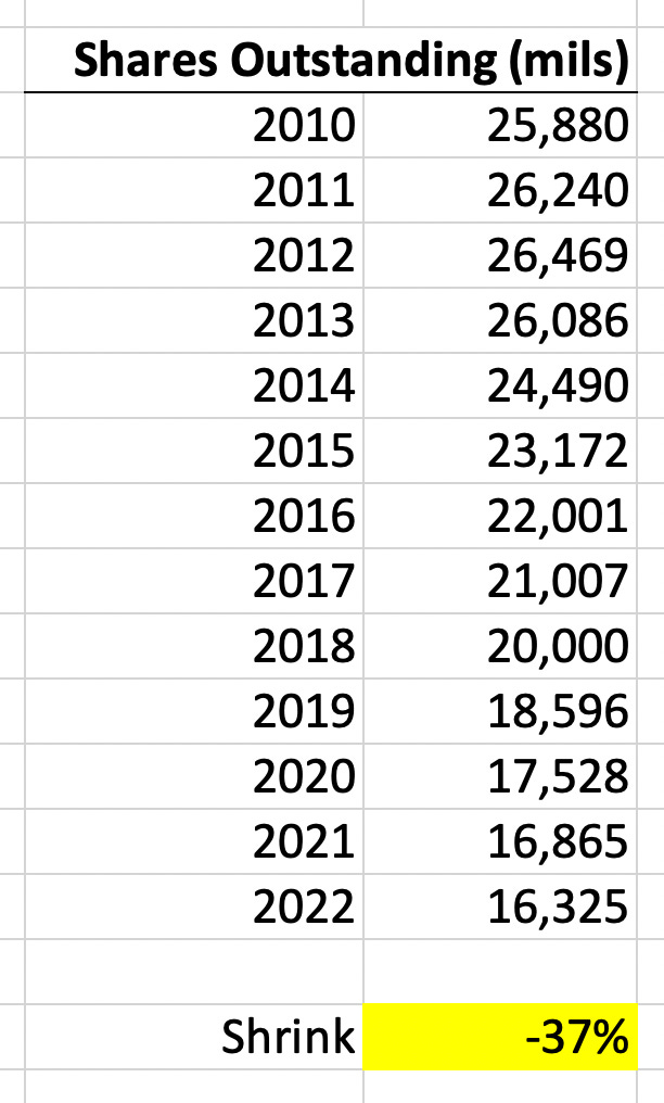 This has allowed the company to shrink the overall diluted share count by 37%.