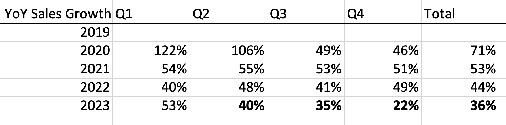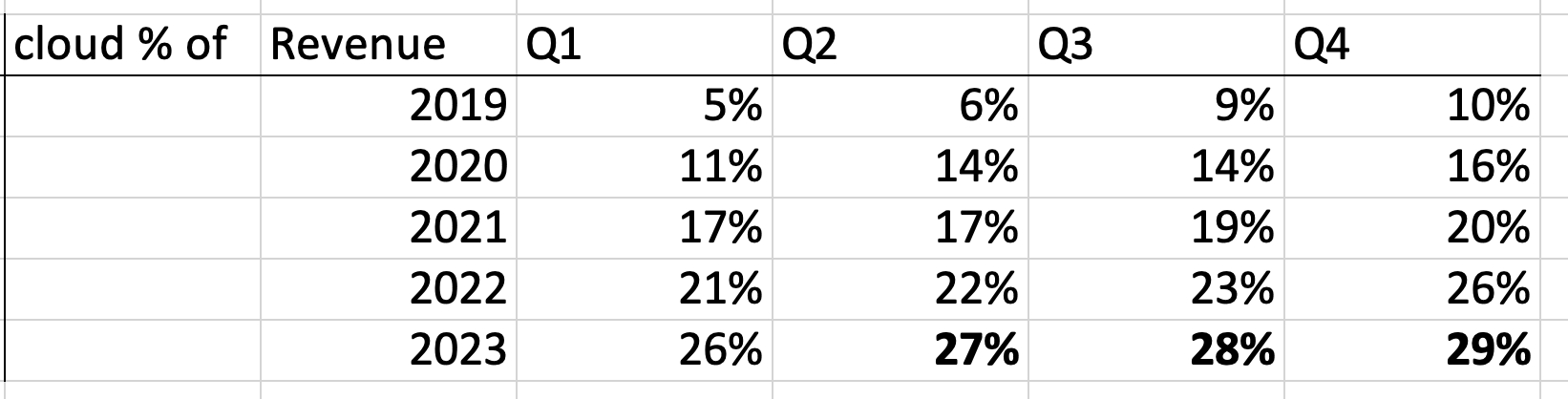 You can see the cloud growth below. The bolded numbers are management’s guidance for Q2 - Q4 ‘23. So I suspect that YoY growth will be at least 40% for the year as management will likely raise guidance throughout the year.
