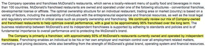 McDonald's doesn't sell burgers, it sells franchises. In other words, it's a real estate company, not a fast-food restaurant.