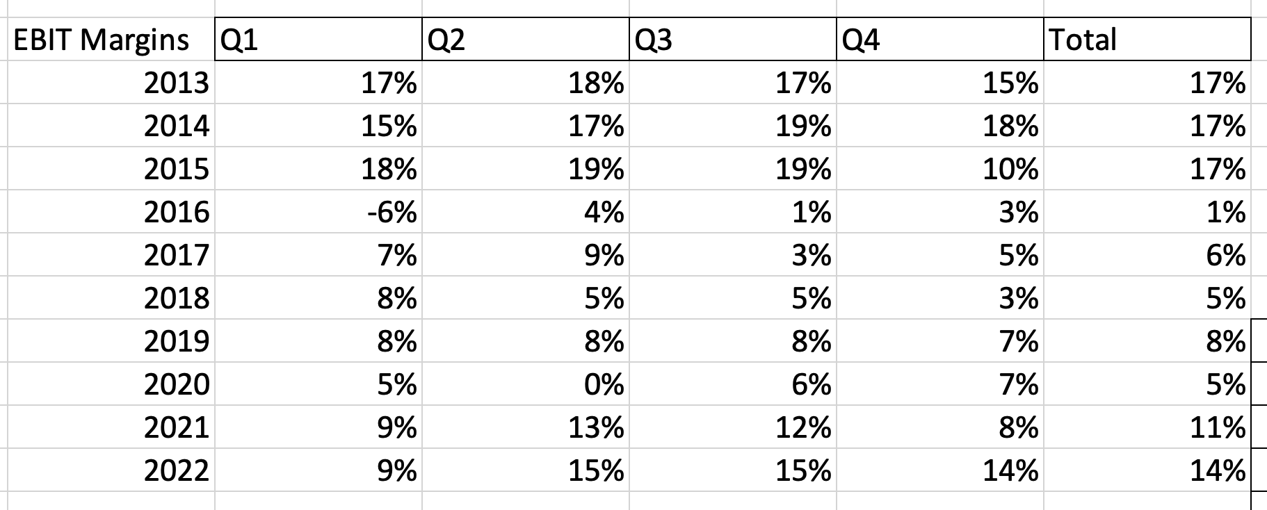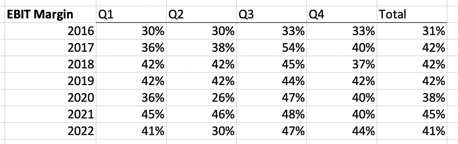 Compare these ~40% EBIT margins with Chipotle, which owns and operates all of its restaurants.