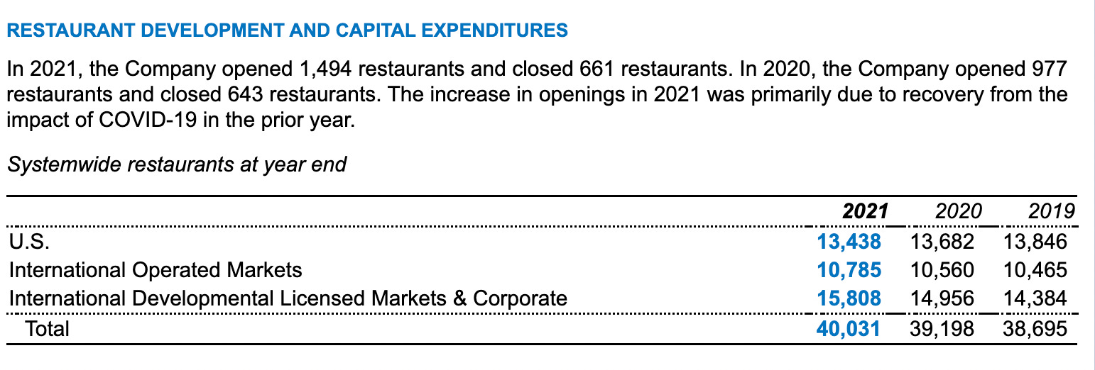The company has 40,013 restaurants, 37,295 of which are franchised. So that means 2,718 are company-owned and operated.