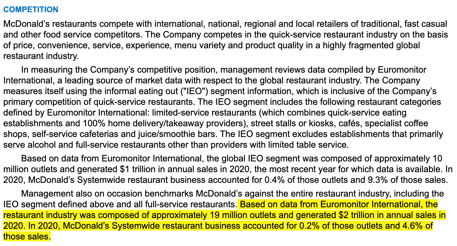 We’ll end with a fun fact: McDonald's has 4.6% market share of the ENTIRE restaurant industry.