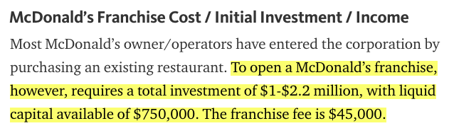 In exchange for the brand and operational know-how, franchisees pay royalties and start-up costs of roughly 13% of sales.