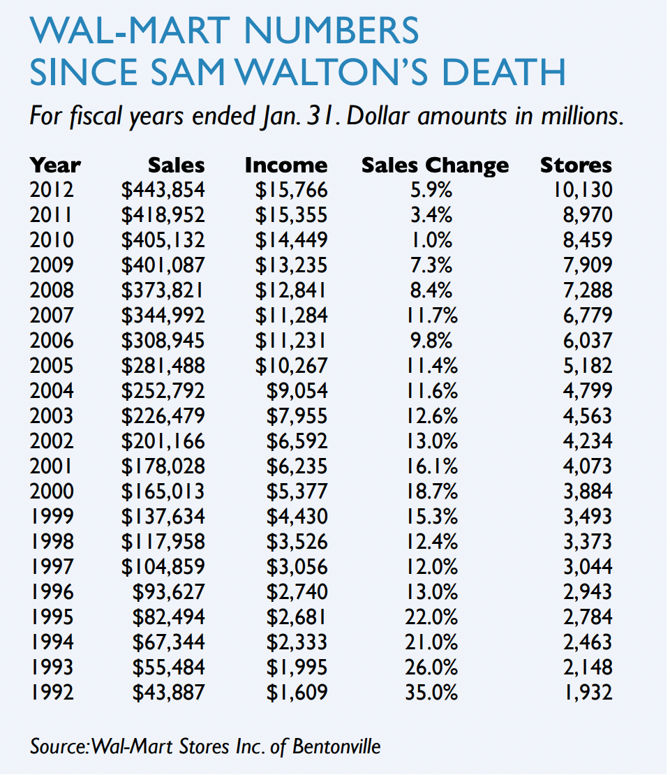 By the time of Sam Walton’s death on April 5, 1992, the company was already doing well over $1 billion in profits. Sam sure knew what he was doing (I would encourage you to read Made in America, his autobiography).